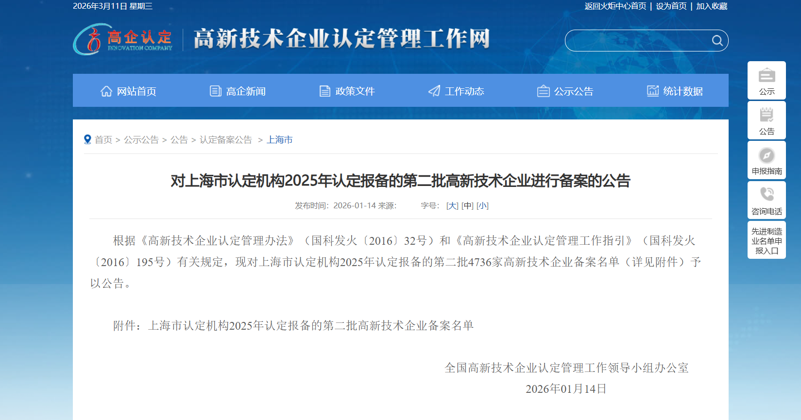 八大胜(上海)生物科技有限公司成功入选上海市认定机构2025年认定报备的第二批高新技术企业名单,正式获得国家级高新技术企业资质。